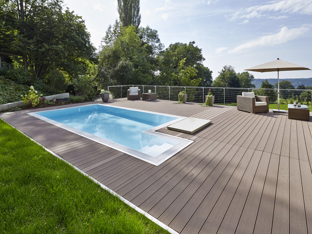 Z dwoma różnymi powierzchniami system Terrace Massive jest wstanie spełnić wszystkie wymagania i oczekiwania w stosunku do tarasu. Deski Massive są bardzo odporne, wytrzymałe i łatwe w pielęgnacji, ponieważ nie mają pustych komór wewnątrz. Dzięki temu też mogą być łatwo i precyzyjnie cięte, jak drewno.